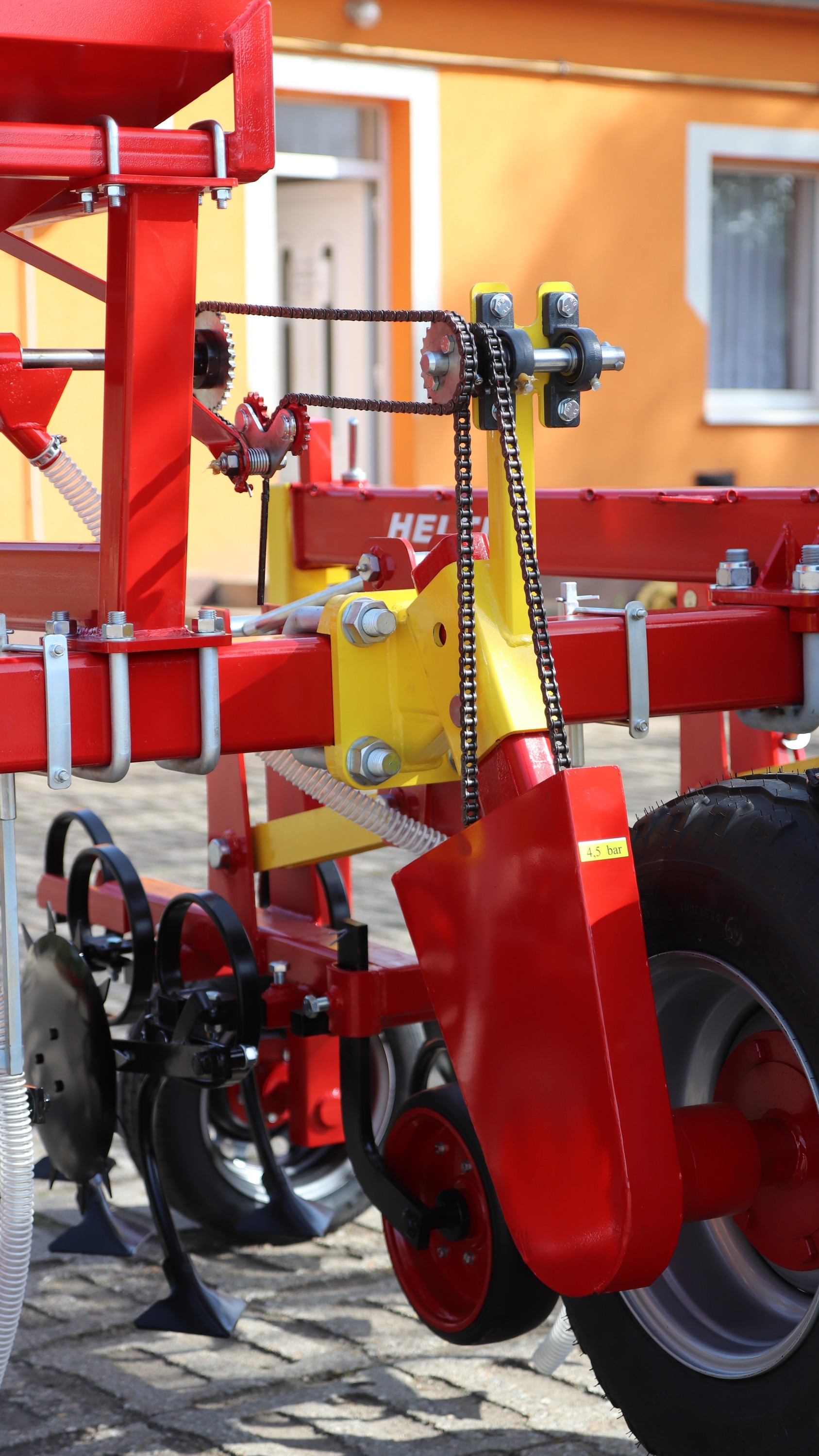 - mankókereke 19 cm széles és 51 cm átmérőjű, megbízható tartást adva a kultivátornak és műtrágyaszóró adapterek számára. A kerék széles felülete laza talajon is jobb tartást bizosít.